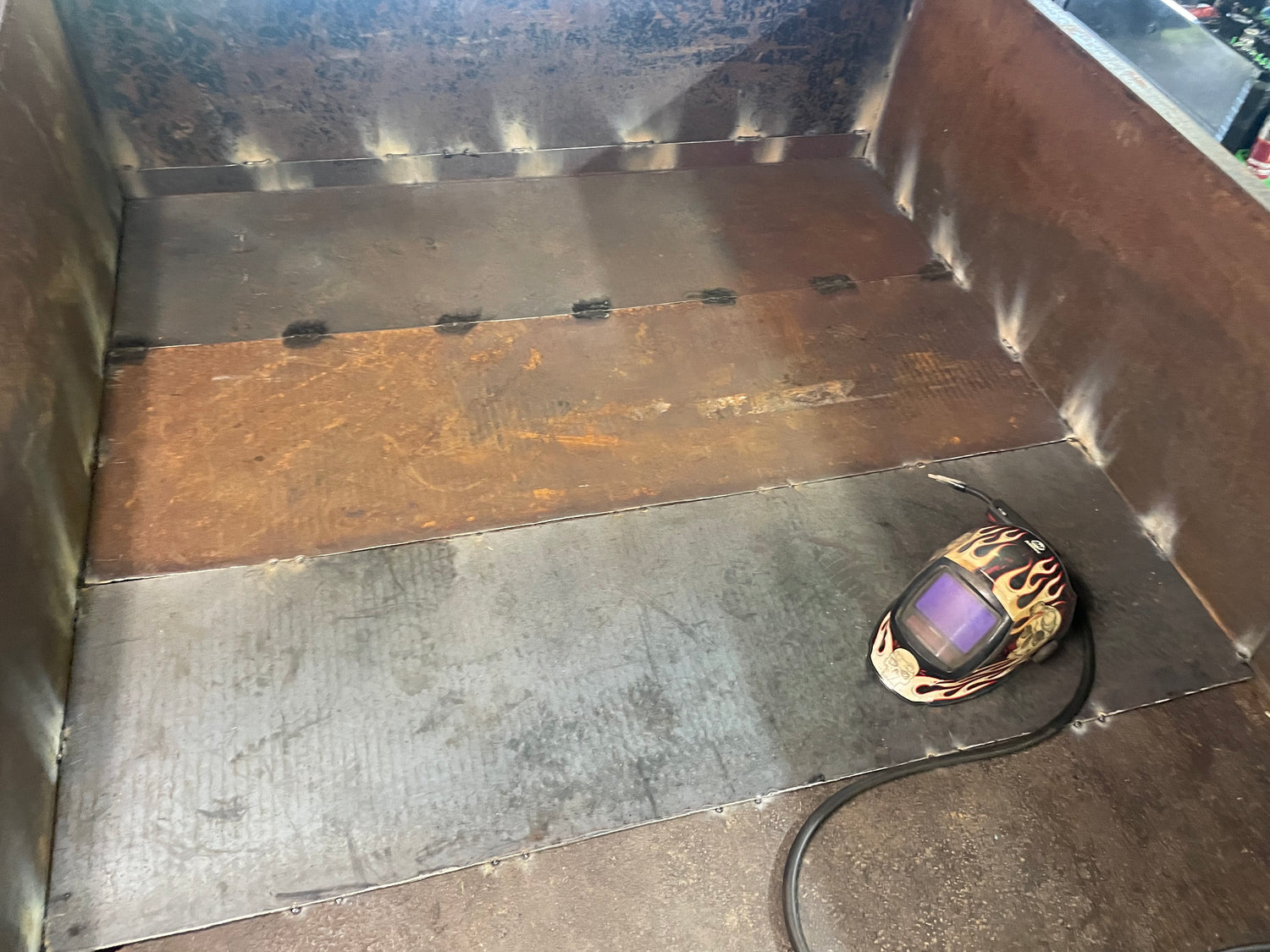 Patched over the existing floor that had rust holes through out it. This customer provided the steel for this job.
